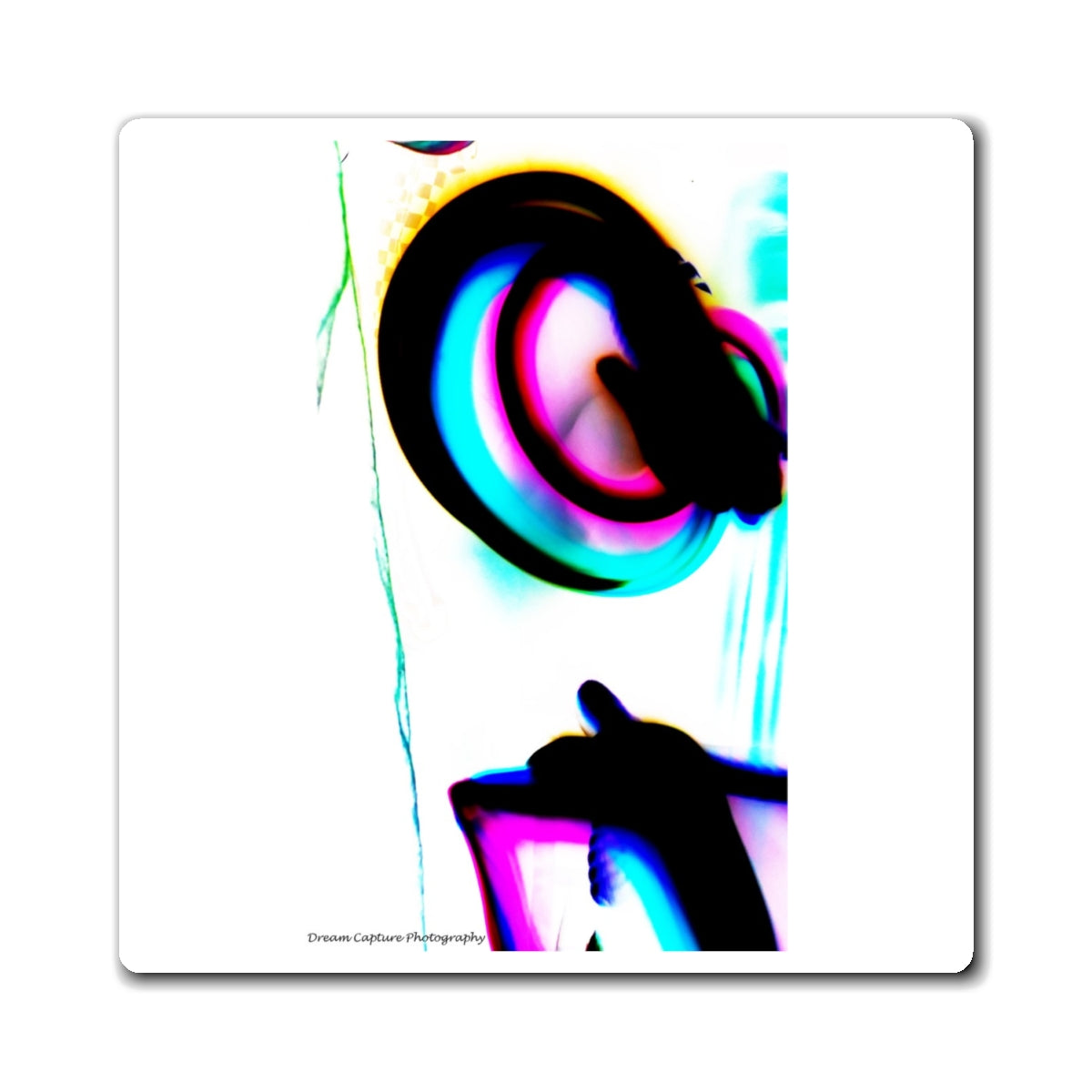 Abstract light painting photograph print of "Mad Trip" on a magnet. Inspired by EDM and flow arts